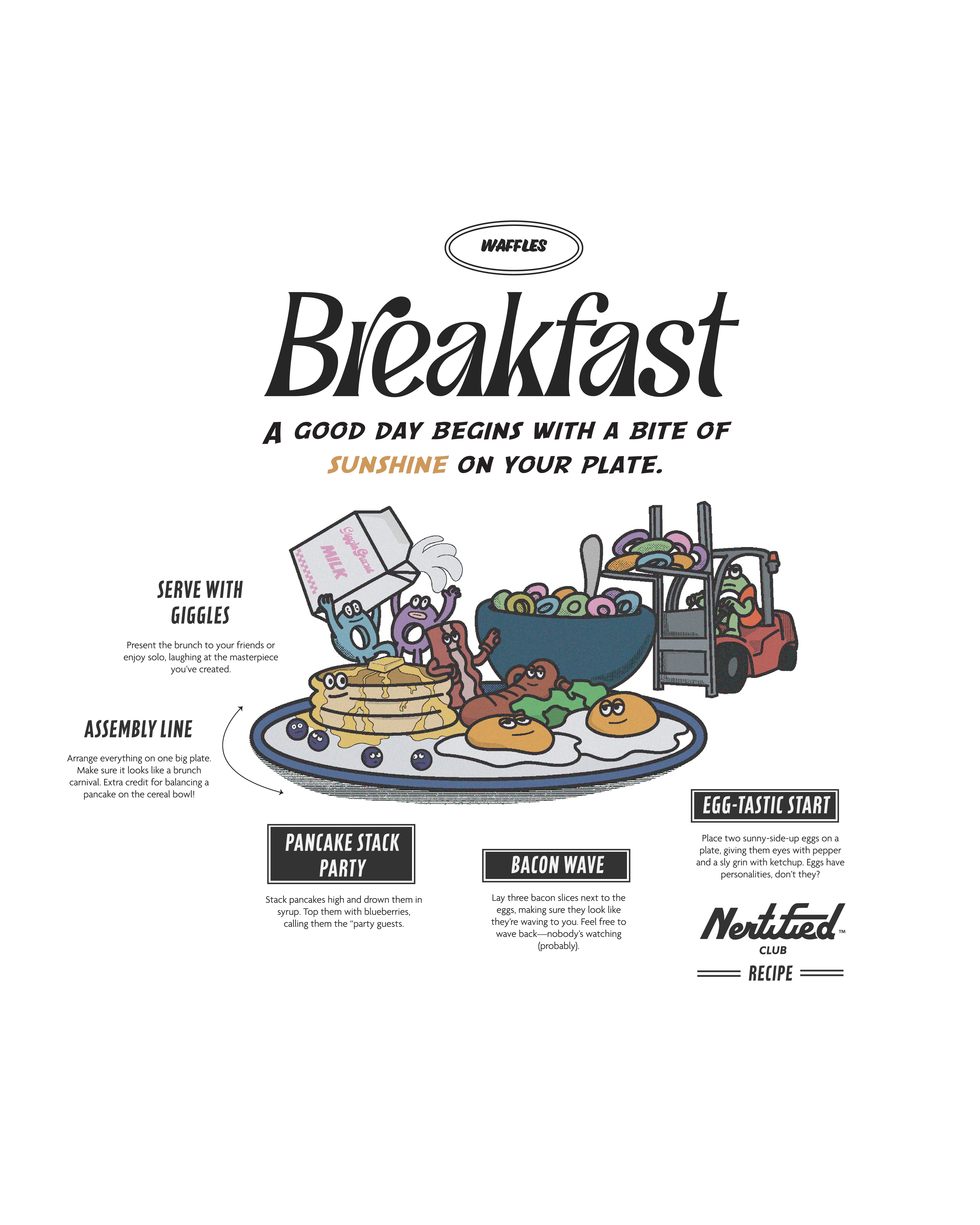 Nertified Classic Breakfast 系列靈感來自復古餐廳文化,重新詮釋 80 年代美式早餐的溫度與幽默。 然而在這可愛外表背後,隱藏著更深層的真相這些「有靈魂的食物」,其實是被 Revelcore 工業 奴役的奴比所製造 ( 未來將有漫畫動畫帶出宇宙觀 )用來蠱惑人類的商品之一。 透過人格化的培根、鬆餅與蛋,打造出一個「早餐會眨眼」的世界——荒誕又可愛,天真卻帶著諷刺。 Nertified Classic Breakfast draws inspiration from retro diner culture, reimagining the warmth and wit of 1980s American breakfasts. Behind the cheerful façade, however, lies a darker truth these “soulful” morning delights were, in fact, one of the many products secretly crafted by the enslaved Nuppi under Revelcore Industries, designed to enchant and addict humankind.