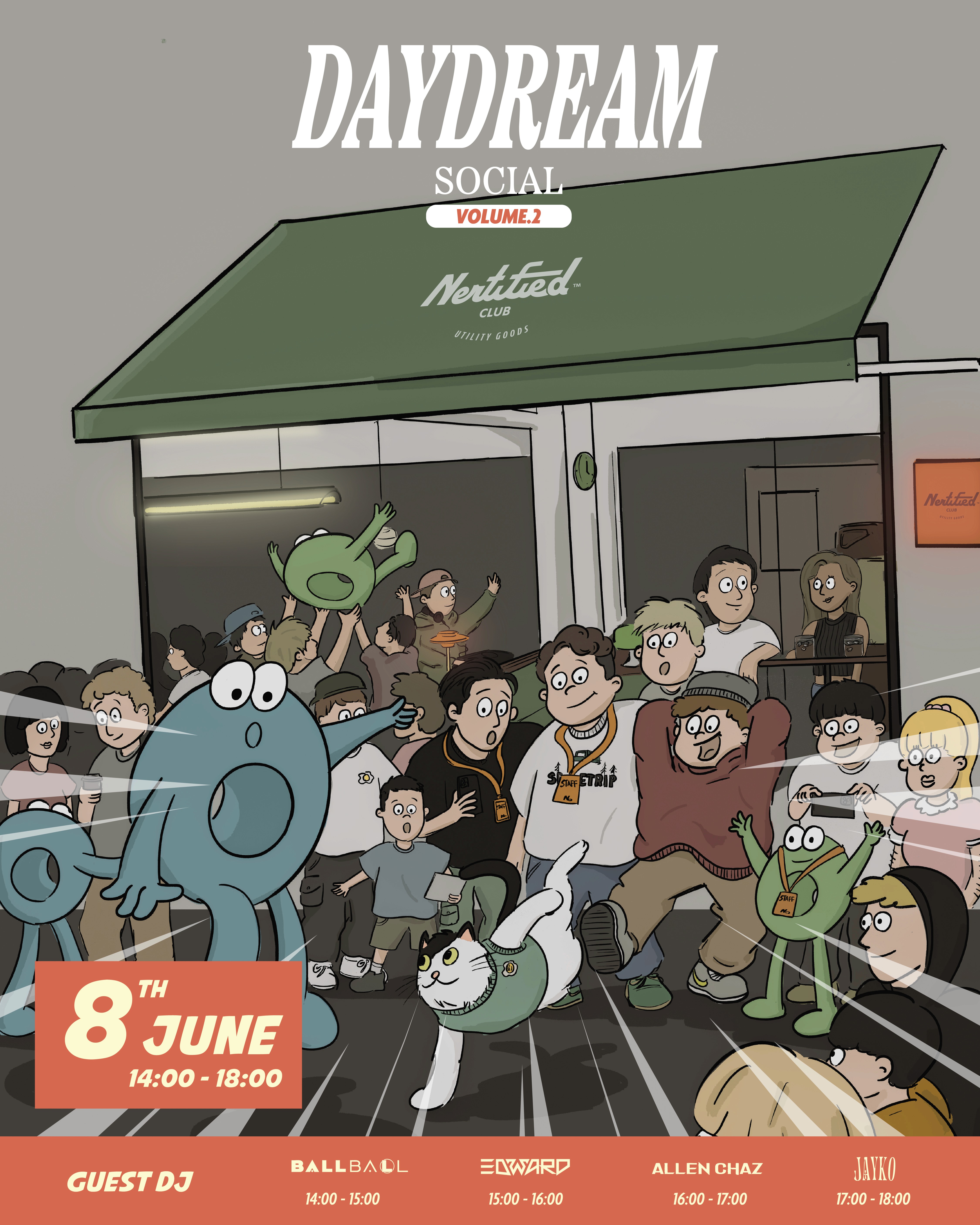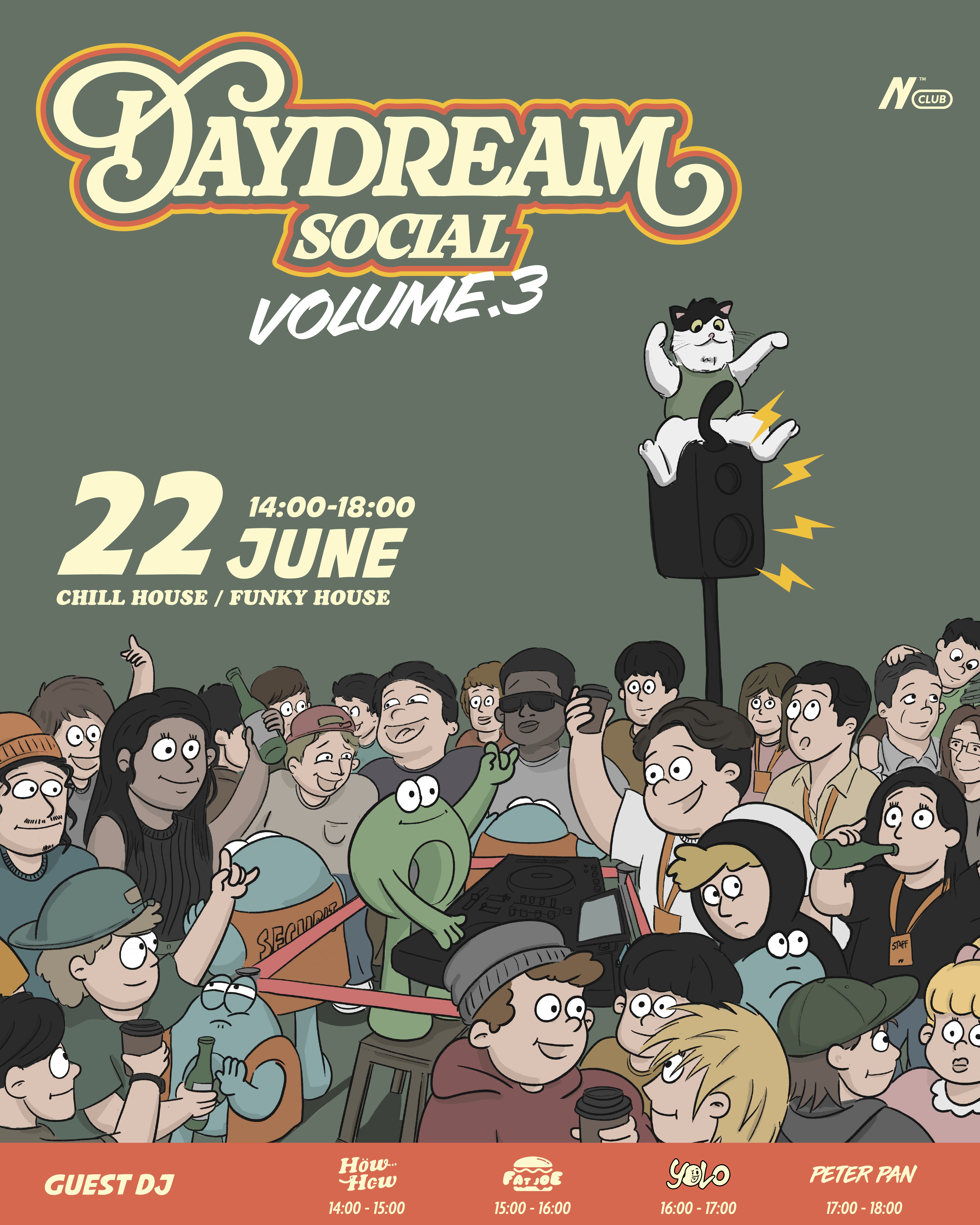白日夢是我們嘗試的白日派對活動,我們希望可以在午後跟大家享受夏日的烈陽搭配著冰涼的啤酒,星期天什麼都不做放輕鬆的結束週末。 幾次舉辦下來,也累積了不少社群互動與在地人氣,逐漸成為 Nertified Club 的固定週末儀式。 aydream Social is our take on a daylight gathering born from the desire to let people enjoy music, sun, and good company on a lazy afternoon. Built around the idea of an “undefined weekend,” it invites everyone to slow down, share drinks, and celebrate the art of doing nothing together.